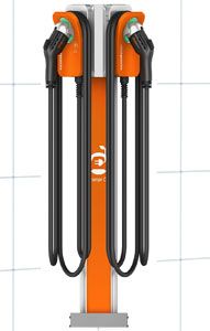 USE: CPF50 Level 2 EV charging stations charge at 48 Amps (9.9 kW at 208 and 11.5 kW at 240 VAC). They are ideal for Fleets where charging can be shared with one charger and multiple vehicles and Multiple Family Dwellings for dedicated charging, where one resident typically uses one charging station. Clean Cord Technology eliminates trip hazards and provides for an efficient and orderly charging area.