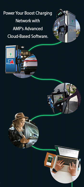 Boost Charger is OCPP 1.6 compatible, enabling secure communication between EV charging stations and charging networks. AMP™ back-end charger management platform can be easily paired with major EV charging networks.