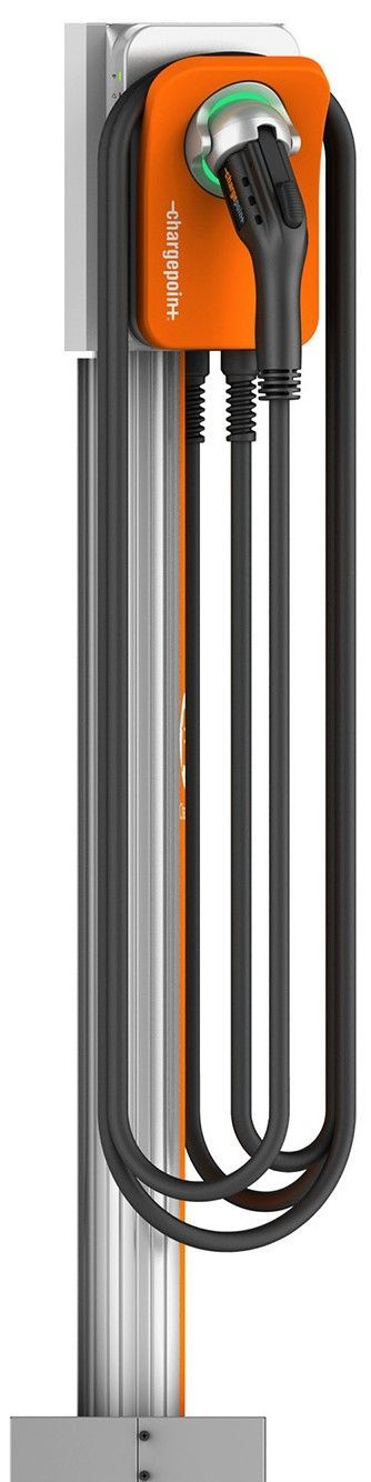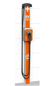 USE: CPF50 Level 2 EV charging stations charge at 48 Amps (9.9 kW at 208 and 11.5 kW at 240 VAC). They are ideal for Fleets where charging can be shared with one charger and multiple vehicles and Multiple Family Dwellings for dedicated charging, where one resident typically uses one charging station. Clean Cord Technology eliminates trip hazards and provides for an efficient and orderly charging area.